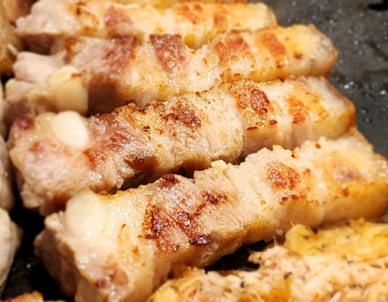 자리에 앉자마자 다양한 밑반찬들이 차려졌습니다. 상추와 콩나물 겉절이, 그리고 여러 가지 기본 반찬들이 준비되었고, 얼마 지나지 않아 주문한 오겹살이 나왔습니다. 고기는 가게 직원분들이 직접 구워주셨는데요, 정말 전문가처럼 구워주셔서 겉은 바삭하고 속은 촉촉한 완벽한 고기를 맛볼 수 있었습니다. 특히, 어느 정도 고기가 익었을 때 새우젓을 함께 구워서 고기에 얹어 먹는 방법은 처음 경험해봤는데요, 생각보다 맛있어서 깜짝 놀랐습니다.
