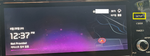 - 설정 화면 진입: 차량의 메인 화면에서 'SETUP'를 누릅니다.