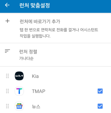 차량 탑승 후 스마트폰에 케이블을 연결하면 반응 속도가 매우 빠르고 터치감도 좋아 정말 편리합니다. 런처 맞춤 설정에서 원하는 앱을 숨기거나 바로가기를 변경할 수도 있습니다.