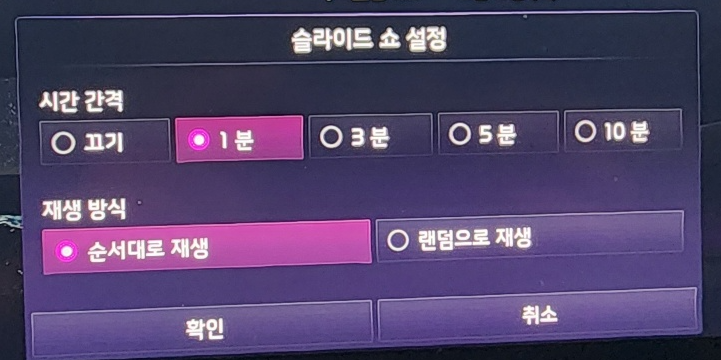 슬라이드 쇼 설정으로 이미지 봐뀌는 시간을 조정할 수 있습니다.
