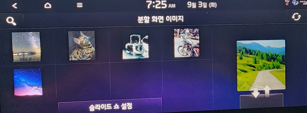 (차량 화면에서 확인 방법 : SETUP → 화면구성 → 디지털 액자 → 대기화면 이미지 or 분할 화면 이미지)