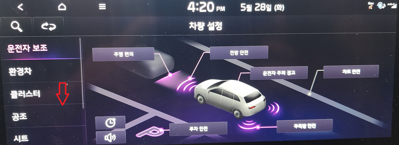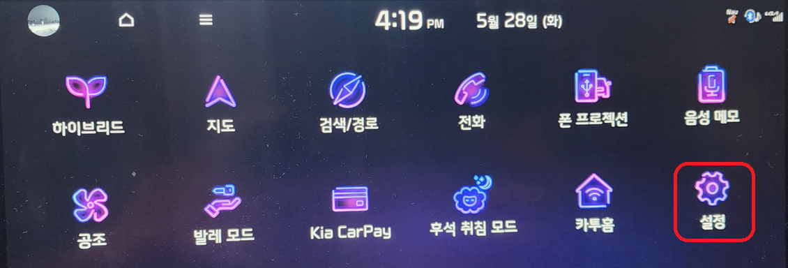 - 설정 메뉴로 이동: 차량 내부의 디스플레이에서 설정 메뉴로 들어갑니다.