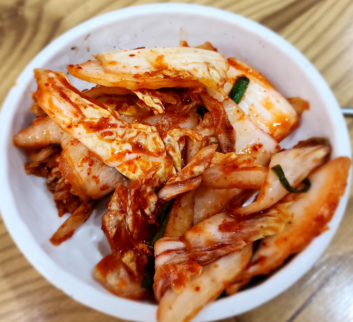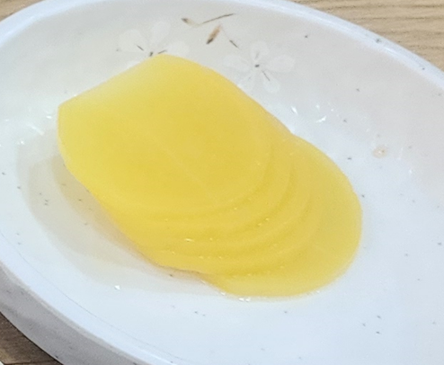 밑반찬은 전통적으로 김치와 단무지 두 가지로 제공되었습니다. 과거와 마찬가지네요. 변함없는 정신 역시 전통입니다.