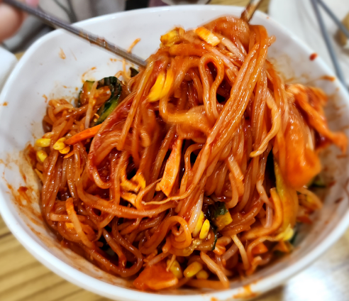 비빔국수는 절대 후회하지 않을 맛입니다. 호불호도 없습니다. 분명히 맛이 있습니다. 옆에 있는 분들도 비빔국수가 맛있다고 하시는 것 같습니다. 이 말은 추천한 만한 음식이라는 말이 되겠죠.