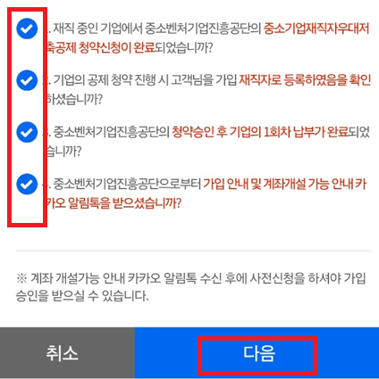 가입신청이 정상적으로 처리되었으면 은행에서 가입 대상자 확인이 진행되고 심사 결과는 약 1~2일 (휴일 제외) 정도 걸립니다. 저는 3일정도 걸렸습니다.