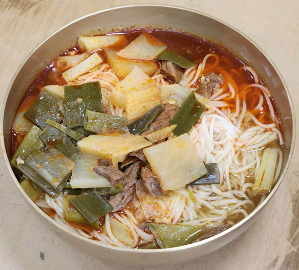 이제 육국수도 맛을 봤는데 국물은 뜨거웠짐반 면발은 쫄깃하게 먹을수 있도록 소면을 찬물에 헹궈 국물을 부을 수 있도록 하여 뜨거움을 줄인 것 같았습니다. 하지만 그릇 자체는 여전히 뜨겁기 때문에 주의는 필요합니다.