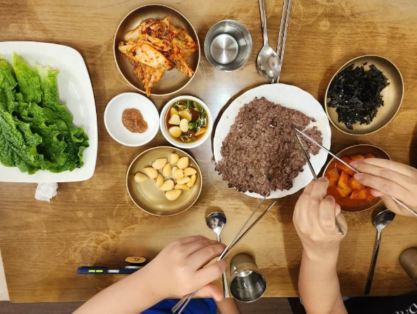 외부에는 기다릴 수 있는 의자가 마련되어 있으며, 모임이나 단체 회식을 위한 공간도 제공합니다. 또한, 좌식을 선호하시는 경우에는 좌식 공간도 마련돼 있습니다. 저는 이날 식사를 위해 의자에 앉아서 주문했습니다. 금액은 저렴하지는 않지만 고급 한우 고기를 사용한다고 하는데 이해하려고 합니다.