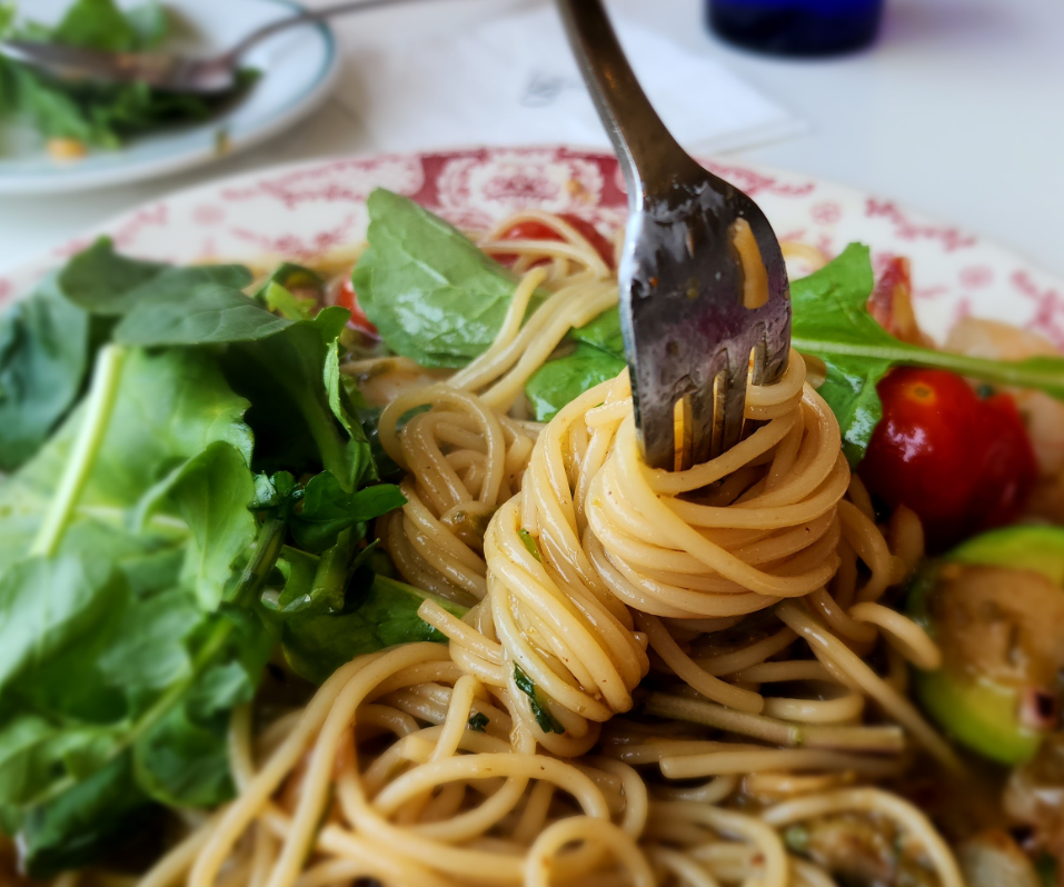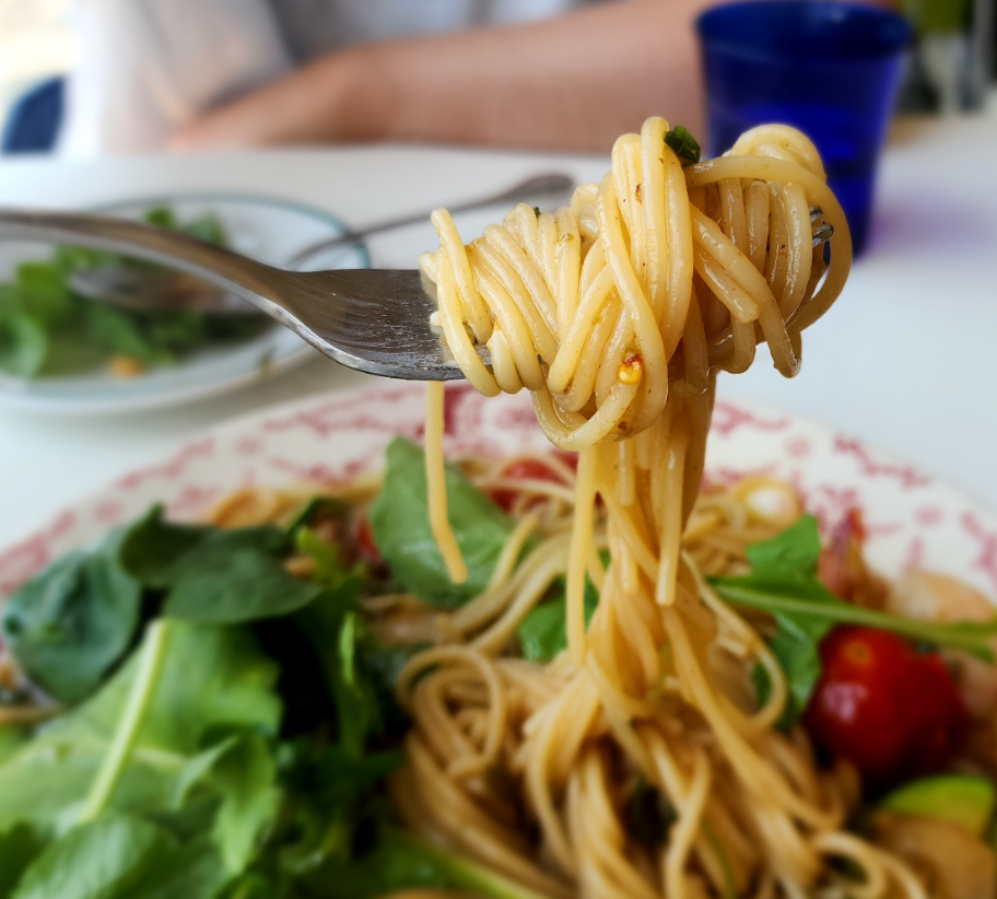 드디어 자리에 앉아 주문한 메뉴는 새우 루꼴라 오일 파스타와 타코 라이스였습니다. 음식이 나왔을 때의 비주얼은 좋았습니다. 새우 루꼴라 오일 파스타는 새우의 통통한 식감과 루꼴라의 상큼한 맛이 어우러져 독특한 풍미를 자아냈습니다. 그러나 저는 다소 생소한 맛이었고, 솔직히 제 스타일은 아니었어요. 하지만 맛이 싫은 것은 아니고, 새로운 경험으로 받아들였습니다.