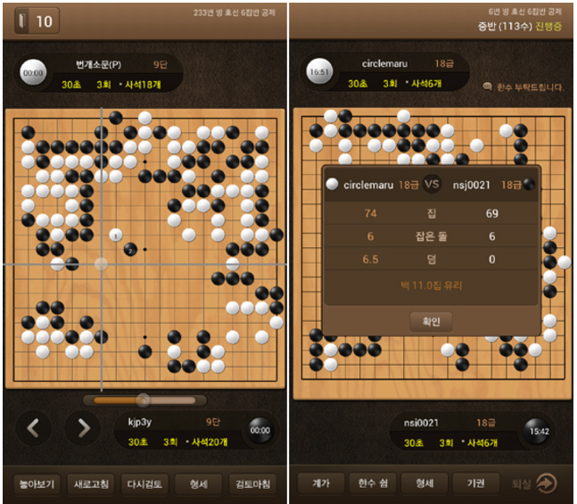 - 대국 기록 확인: 대국 결과를 분석하여 실력을 향상시킬 수 있습니다.