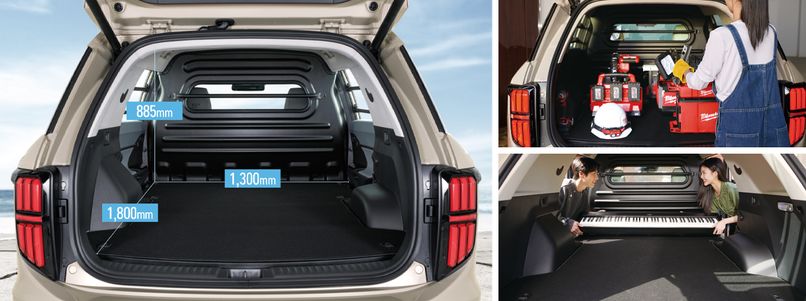 - 적재공간크기: 885mm x 1,300mm x 1,800mm
