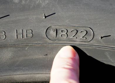 타이어의 생산 연도는 타이어 옆면에 있는 네 자리 숫자로 확인할 수 있습니다. 예를 들어, B씨의 타이어에 "1822"이 적혀 있었다면, 이는 2022년 18주차에 생산된 타이어를 의미합니다. 타이어는 고무 재질이기 때문에 5년 정도가 지나면 딱딱해지고 갈라지기 시작하므로, 교체가 필요합니다. (동전 백원 : 빨간색 깊이 교체 필요, 파랑색 적정 수준)
